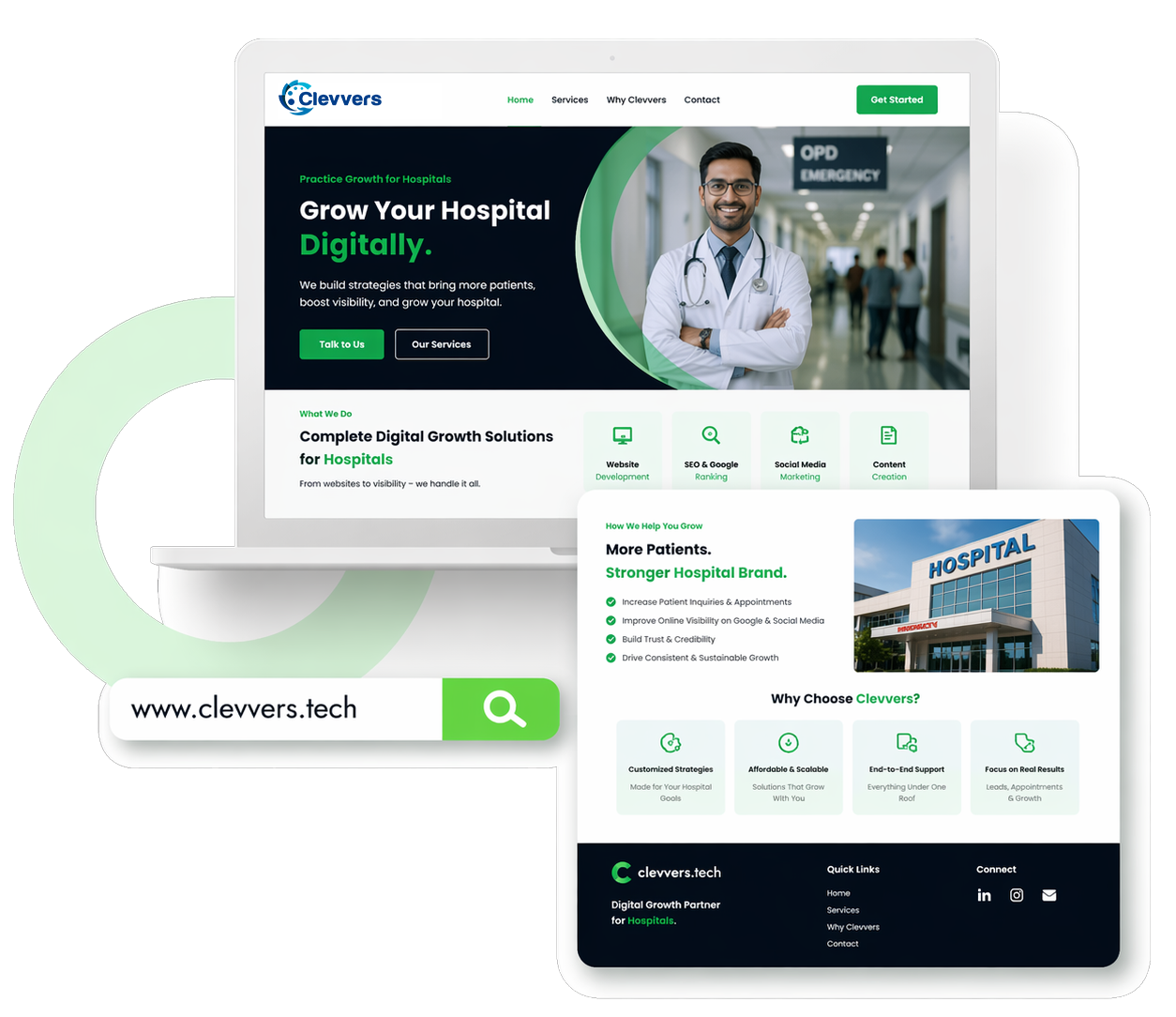 At Clevvers Tech, we help hospitals grow faster with smart digital strategies that bring more patients, improve engagement, and build strong online presence.